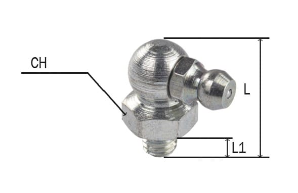 INGRASSATORE IDRAULICO A TESTA SFERICA INCLINATO 90° FILETTO 10X1